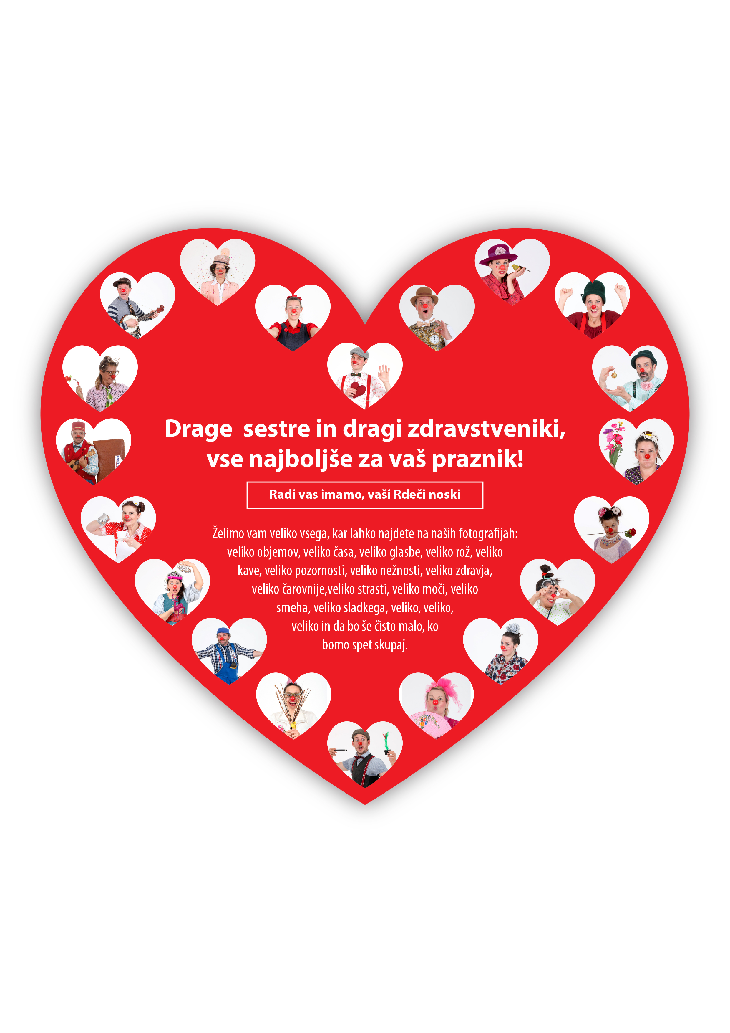 Rdeči noski smo veseli, da se ponovno vračamo v notranjost bolnišnic in drugih ustanov in hvaležni, da smo tudi v času, ko nismo smeli v bolnišnice skupaj premagovali ovire in našli načine, kako obiskati otroke – na daljavo ali skozi okna. Z malo sreče in ob spoštovanju ukrepov verjamemo, da bomo kmalu spet povsod, kjer smo bili pred pandemijo. Do takrat pa vam pošiljamo velik objem.