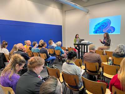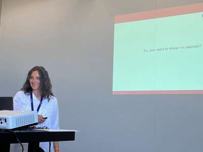 Ana Lavrinc, ki je v našem Društvu vodja programa Pester orkester in klovnesa, je na konferenci predstavila, kako smo se med pandemijo prilagodili novim razmeram. Predstava je tako zaživela tudi na daljavo - glasba, radost in smeh se namreč širijo preko meja in lahko premagajo vsako oviro.
