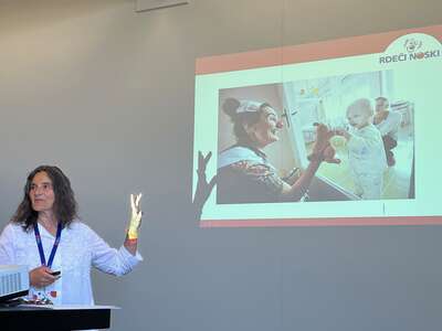Umetniška vodja Društva Rdeči noski in klovnesa Pérola Regina Ribeiro je z madžarsko kolegico Tünde Gelencsér in z video podporo dr. Tine Vesel Tajnšek, bolnišničnim klovnom in medicinskemu osebju z vsega sveta predstavila program Dežurni klovn - Intensive Smile, kjer naši bolnišnični klovni sodelujejo pri bolečih posegih in uspešno pomagajo, da je za otroke in medicinsko osebje postopek lažji in doživetje bolj sproščeno.