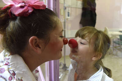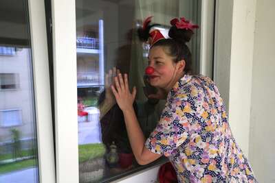 Društvo Rdeči noski z veseljem sporoča, da so se bolnišnični klovni vrnili v bolnišnice in druge ustanove. V zadnjem letu smo se dobro prilagodili razmeram in svoje delo opravljali na daljavo – prek spletnih aplikacij in pod okni in balkoni ustanov, v katerih po navadi izvajamo svoje programe.