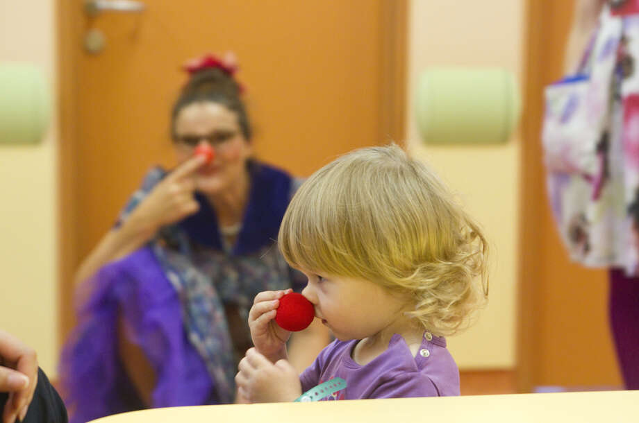 Ko je prišla sestra, da jih pospremi v intervencijsko sobo, je klovnesa spet hotela zraven in spet so ji dovolili.